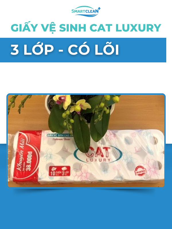 Giấy vệ sinh CAT Luxury 12 cuộn – 3 lớp, có lõi là lựa chọn hoàn hảo cho gia đình, khách sạn và văn phòng nhờ sự kết hợp giữa chất lượng cao, độ mềm mại và an toàn tuyệt đối. Sản phẩm được sản xuất từ 100% bột giấy nguyên sinh, trắng tự nhiên, không chứa hóa chất tẩy trắng độc hại, thân thiện với môi trường và an toàn cho sức khỏe người dùng.
