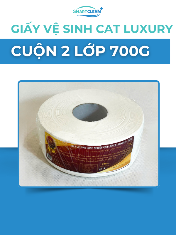 Giấy Vệ Sinh Công Nghiệp Cat Luxury – 2 lớp, có lõi (~700g/cuộn) là lựa chọn tối ưu cho các tòa nhà, văn phòng, nhà máy, bệnh viện, trường học và những nơi có nhu cầu sử dụng giấy lớn. Sản phẩm được sản xuất từ 100% bột giấy nguyên sinh, trắng tự nhiên, mềm mịn và dai, an toàn tuyệt đối cho sức khỏe và thân thiện với môi trường. Với công nghệ sản xuất hiện đại, Cat Luxury đáp ứng các tiêu chuẩn OBA Free, Heavy Metal và Hygiene, giúp mang lại sự yên tâm tối đa khi sử dụng.