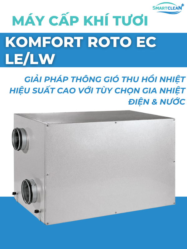 KOMFORT Roto EC LE/LW là dòng máy cấp khí tươi thu hồi nhiệt bằng bộ trao đổi nhiệt dạng quay (rotary heat exchanger), được thiết kế cho căn hộ, nhà phố, biệt thự và văn phòng. Thiết bị giúp duy trì không khí trong lành, tiết kiệm năng lượng và giữ cân bằng vi khí hậu trong mọi điều kiện thời tiết.